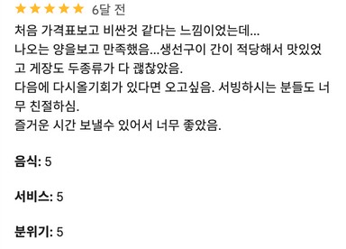 - 사장님의 세심한 배려와 센스 있는 메뉴 추천